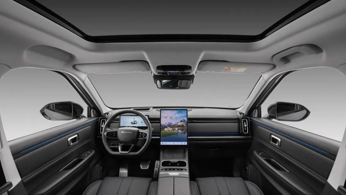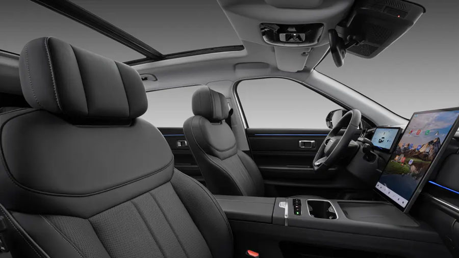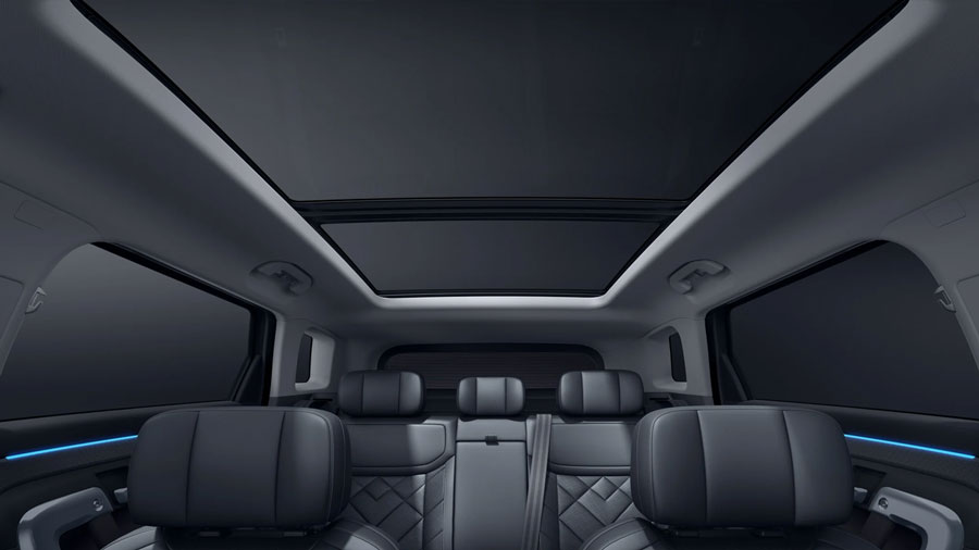 Cửa sổ trời toàn cảnh rộng 1.1 m2 sẽ mang ánh sáng tự nhiên tràn ngập khoang lái, tạo cảm giác thoáng rộng cho không gian nội thất vốn đã rộng rãi. Góp phần tăng cường sự thoải mái cho cả người lái và hành khách.